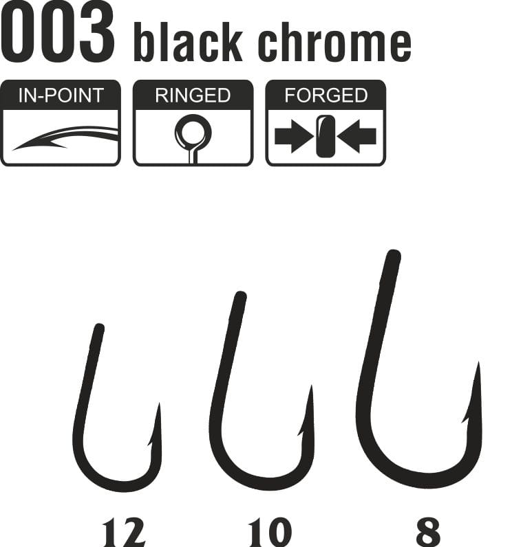 Haczyki Traper Hikara Method Feeder 003 Nr 12 to precyzyjnie wykonane japońskie haczyki feederowe, które sprawdzą się doskonale w zestawach do łowienia ostrożnych ryb na delikatne przynęty. Wykonane z trwałej kutek stali węglowej (Forged) i wyposażone w chemicznie ostrzony grot In-Point, zapewniają błyskawiczne i pewne zacięcie nawet przy bardzo lekkim braniu. Klasyczne oczko (Ringed) pozwala na łatwy montaż przyponów, a wykończenie w kolorze Black Chrome ogranicza refleksy światła pod wodą, zwiększając skuteczność zestawu.