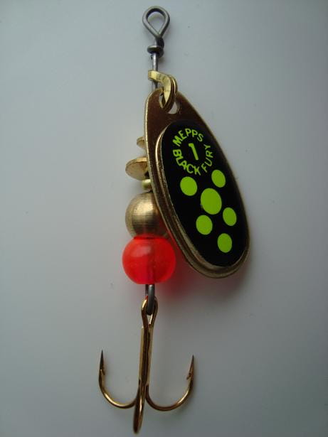 Błystka obrotowa Mepps Black Fury złoty/seledynowe kropki nr 1