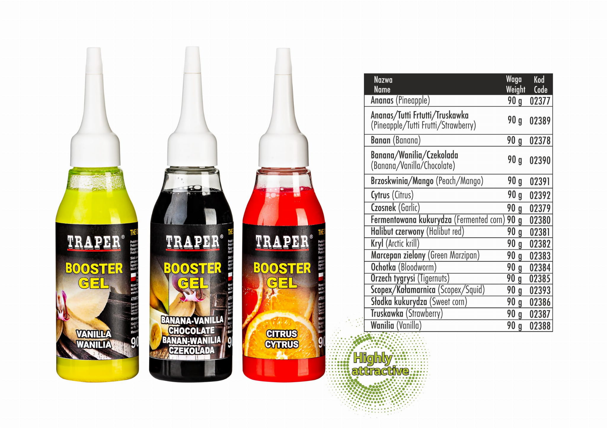 Zwiększenie częstotliwości brań: Dzięki swojej skoncentrowanej formule, Booster Gel zwiększa szansę na szybkie przyciągnięcie ryb, co poprawia efektywność połowów.