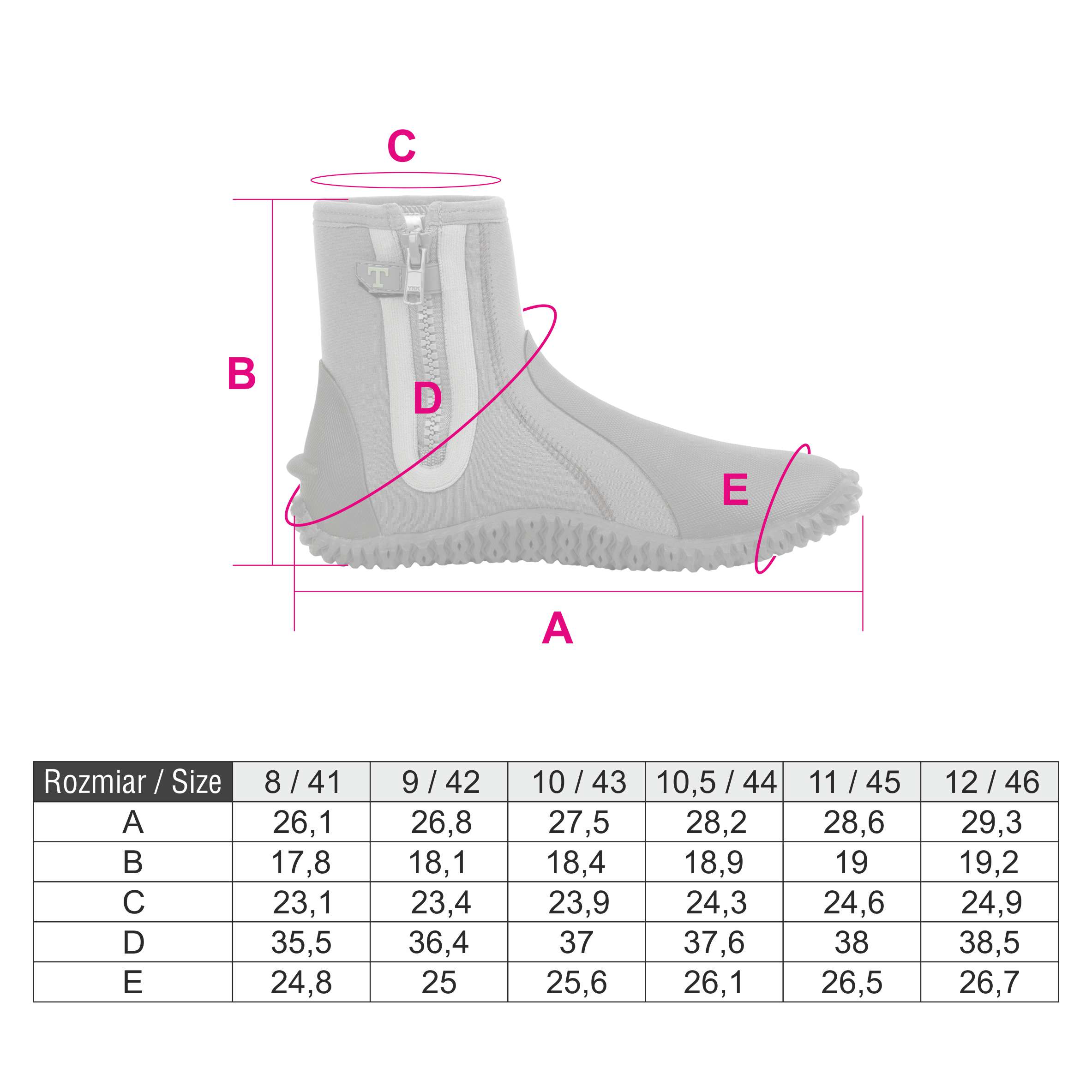 • Neopren 5 mm – komfort termiczny i ochrona stóp