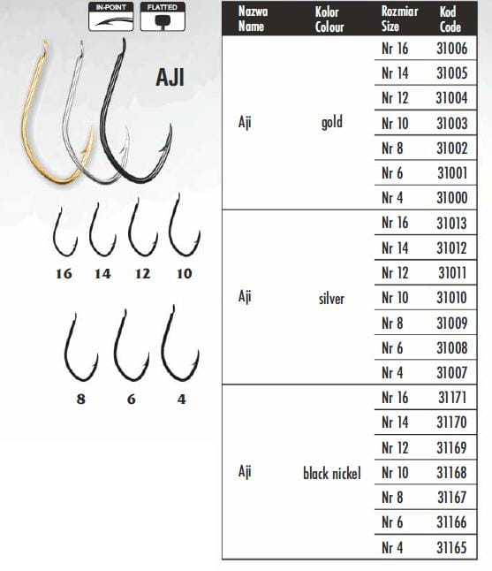 Haczyki Traper Bushido – Aji Silver to mocne i precyzyjne haczyki, stworzone do łowienia większych ryb spokojnego żeru, takich jak leszcz, karp, karaś czy lin. Charakteryzują się klasycznym srebrnym wykończeniem, wysoką ostrością oraz dużą wytrzymałością.