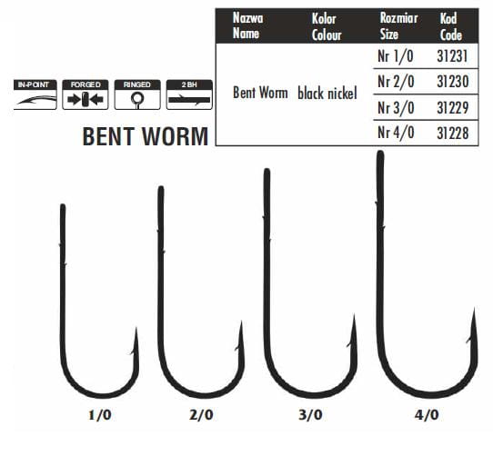 Typ: Bent Worm, haczyk z oczkiem, 2 zadziorki na trzonku