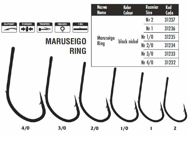 Typ: Maruseigo Ring, haczyk z oczkiem, 1 zadzior na ramieniu