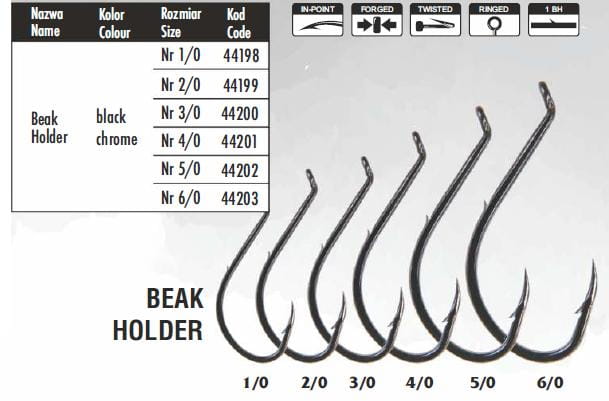 Wykonane z wysokowęglowej stali, są chemicznie ostrzone i elektronicznie testowane, co zapewnia im doskonałą skuteczność i trwałość. Model Beak Holder sprawdzi się idealnie w metodach gruntowych oraz przy połowie na większe przynęty naturalne.