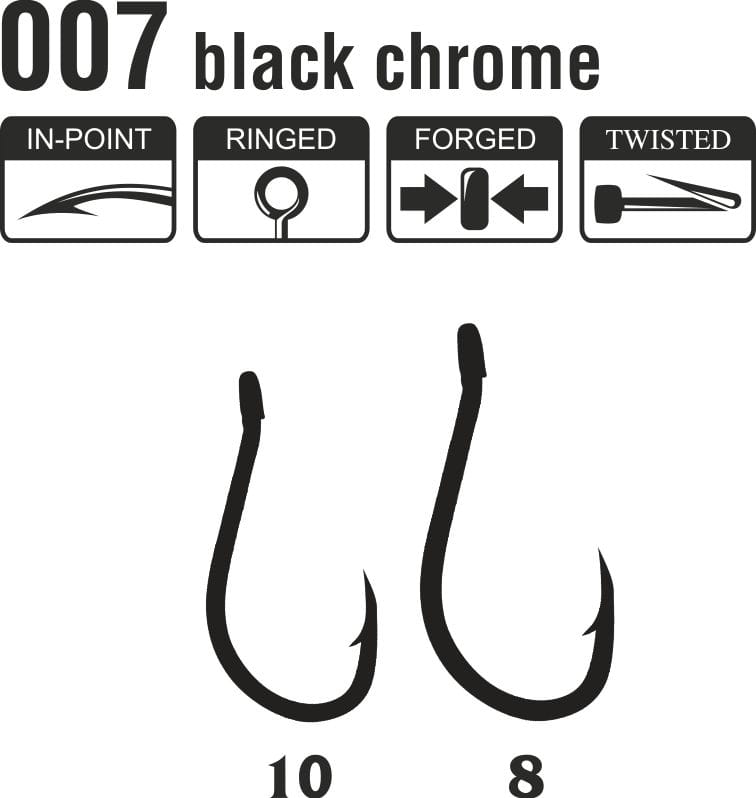 Haczyki Traper Hikara Method Feeder 007 Nr 10 to wysokiej jakości japońskie haczyki stworzone z myślą o technice method feeder i lekkim feederze. Wyposażone w chemicznie ostrzony grot In-Point, gwarantują szybkie i skuteczne zacięcie ryby. Kuty trzonek (Forged) zwiększa trwałość i odporność na odkształcenia, a skręcony trzonek (Twisted) poprawia prezentację przynęty i skuteczność holu. Oczko Ringed zapewnia łatwe i trwałe mocowanie przyponu. Matowe wykończenie Black Chrome minimalizuje odbicia światła, czyniąc haczyk mniej widocznym dla ryb.