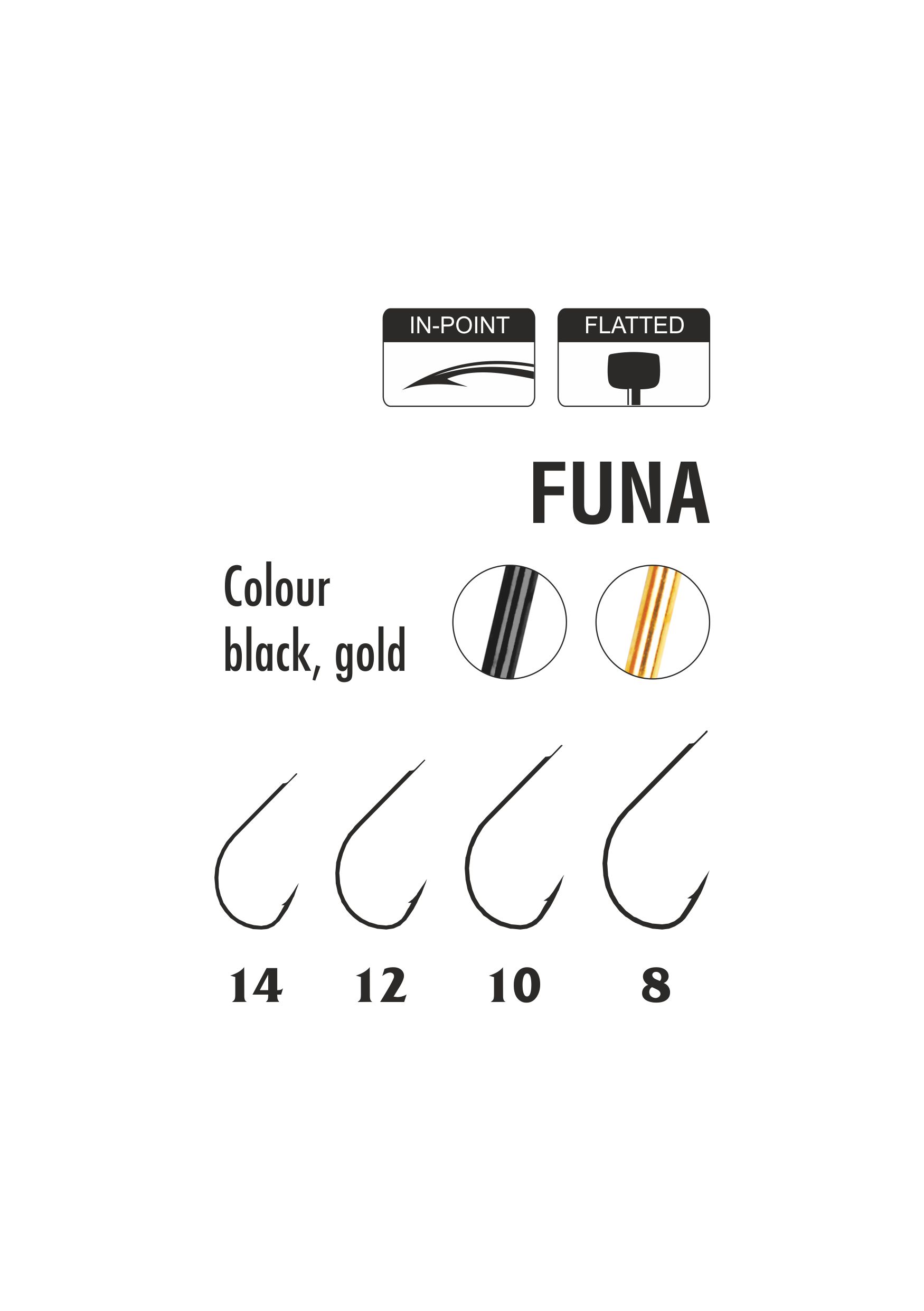 Model Funa został zaprojektowany z myślą o skutecznym łowieniu ryb spokojnego żeru. Jego lekko zaokrąglony łuk kolankowy zapewnia naturalną prezentację przynęty, a grot typu In-Point – ostry i zakrzywiony – gwarantuje szybkie i pewne zacięcie.
