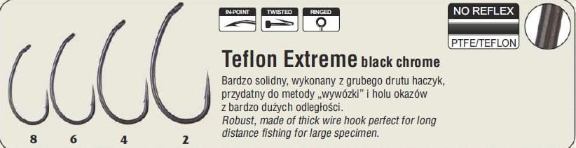 Hikara Teflon Extreme jest szczególnie polecany do wywózki zestawów na duże odległości oraz połowów w miejscach, gdzie karp ma możliwość ucieczki z zestawu. Sprawdzi się również w przypadku poławiania większych okazów, gdy konieczna jest duża siła i trwałość haczyka w trakcie holu.