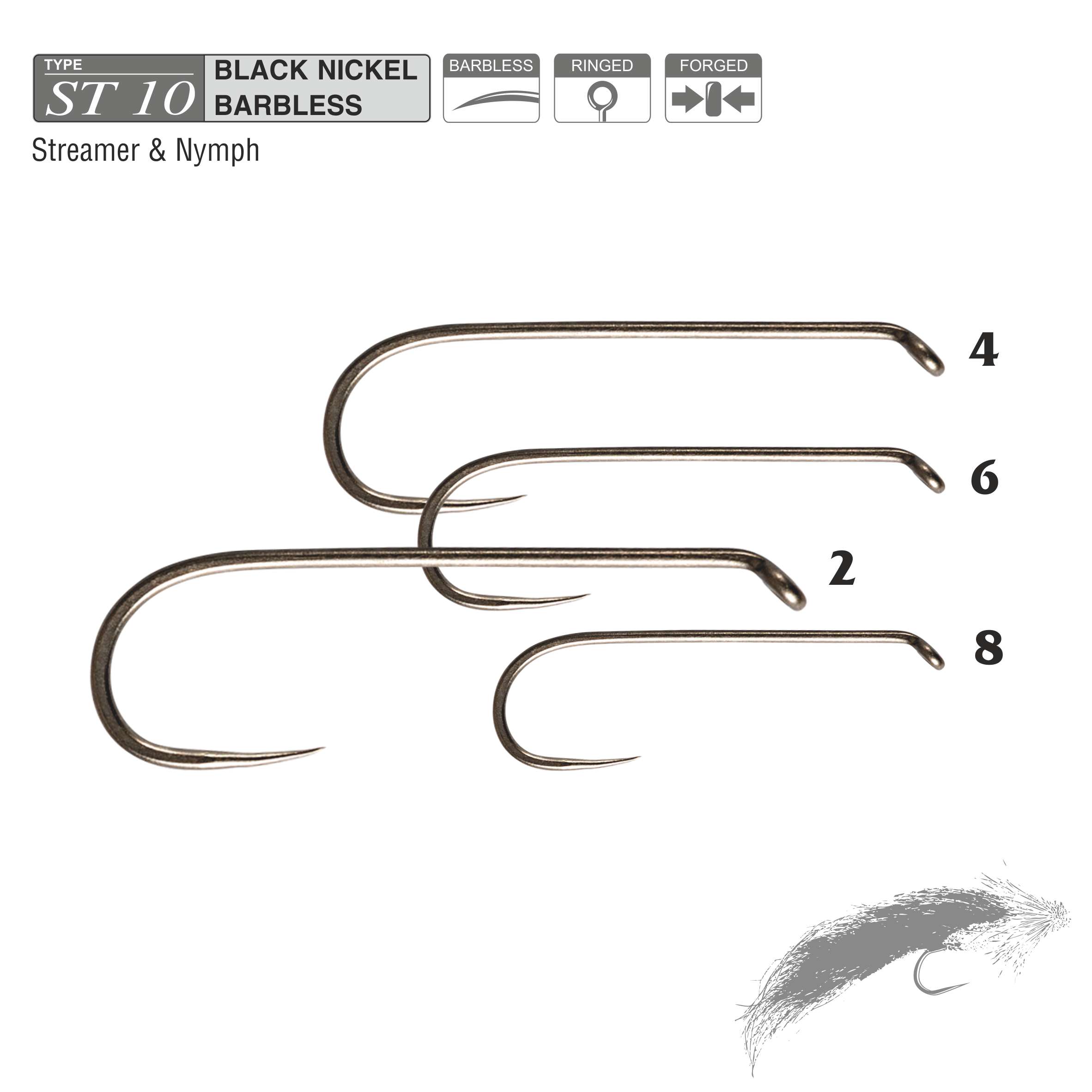 Haczyki muchowe Traper – Hikara ST10 Bronze to solidne, bezzadziorowe haki przeznaczone do wiązania streamerów oraz dużych nimf, stosowanych w połowach silnych ryb drapieżnych i łososiowatych.