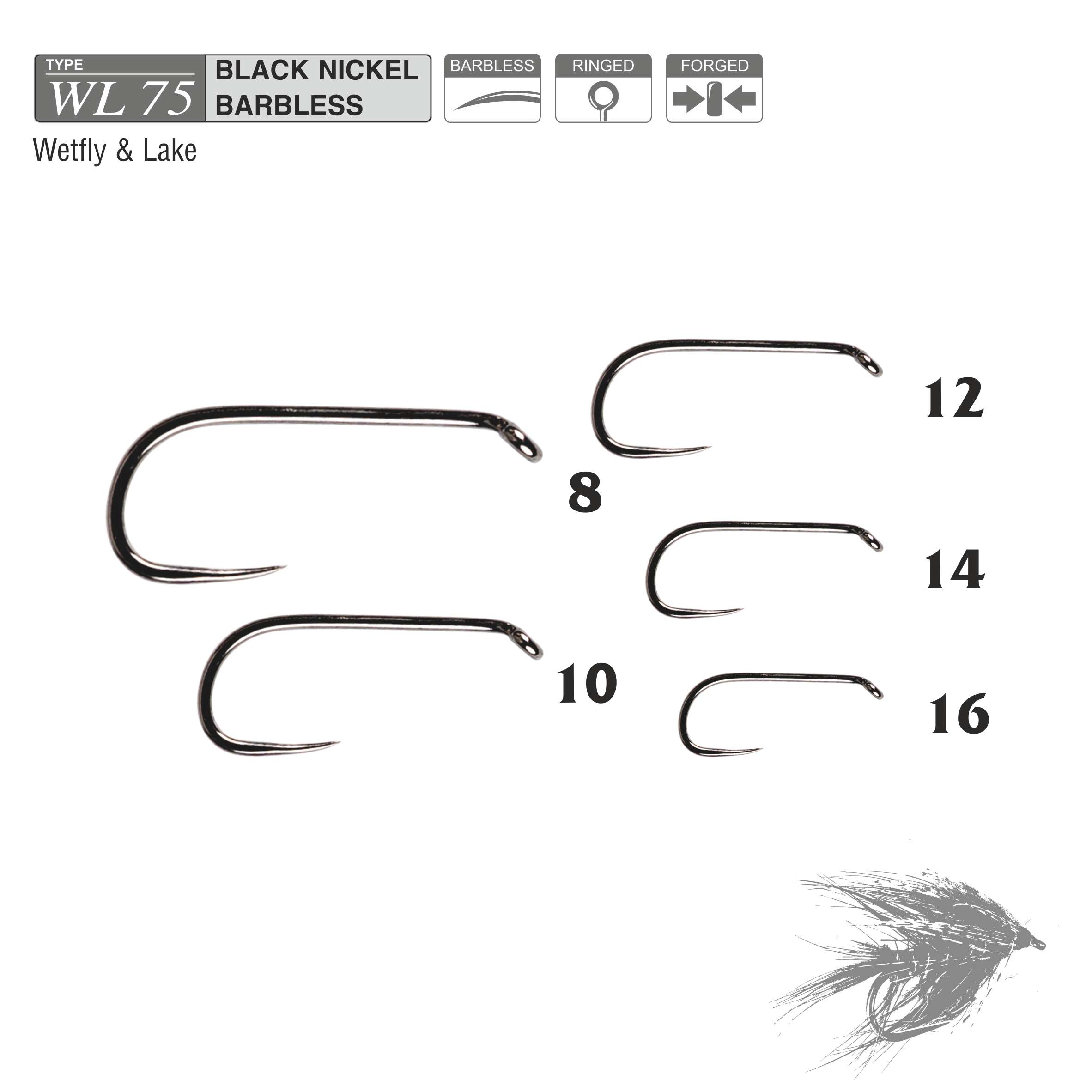 Haczyki muchowe Traper – Hikara WL75 Black Nickel to wysokiej klasy, japońskie haki zaprojektowane specjalnie do mokrych much jeziorowych, gdzie liczy się wytrzymałość, stabilność i precyzyjne zacięcie.