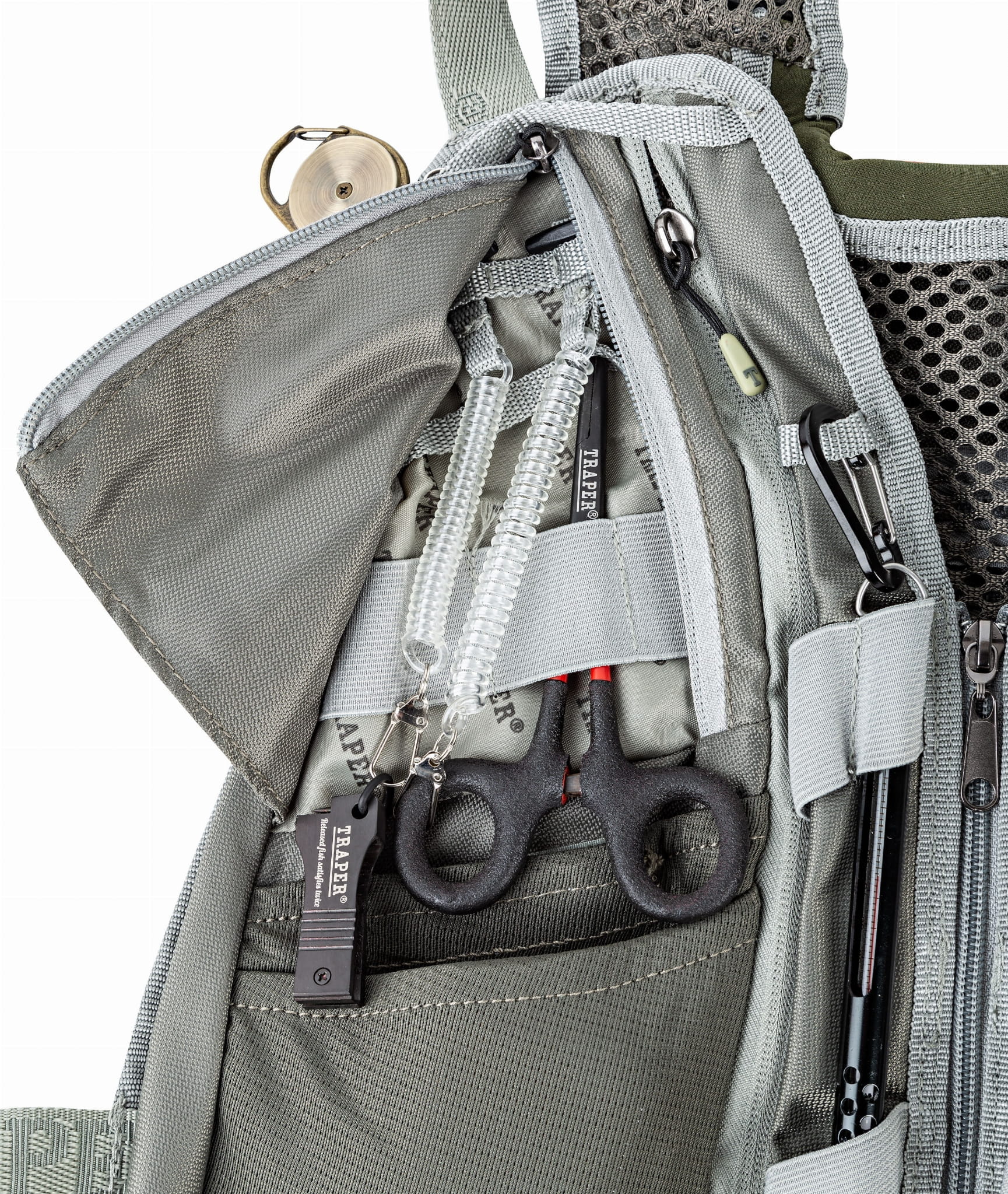 Kamizelka Traper Combo Active Vertical to idealny wybór dla wędkarzy, którzy szukają funkcjonalnego, wygodnego i wszechstronnego rozwiązania. Doskonale sprawdzi się zarówno na łowiskach, jak i podczas długich wypraw wędkarskich. Dzięki połączeniu z plecakiem Combo oraz licznym kieszeniom i zaczepom, masz pewność, że wszystkie akcesoria będą zawsze pod ręką.