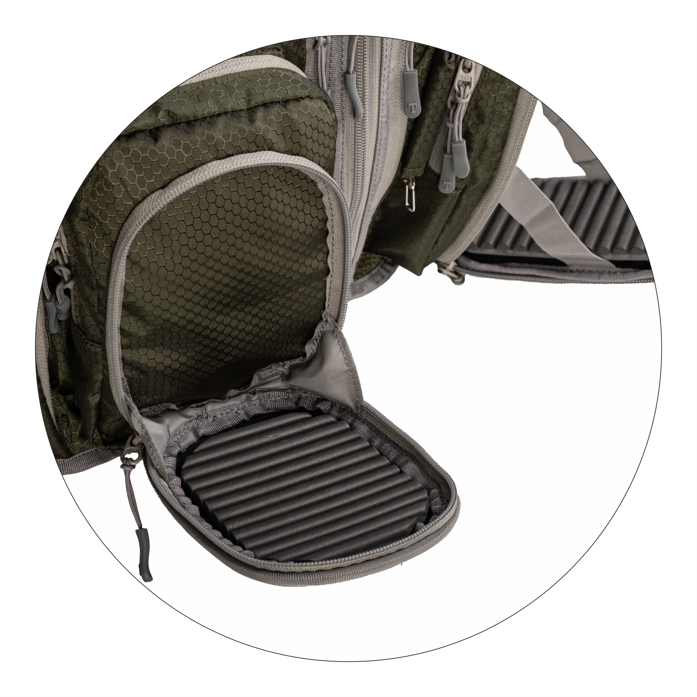 Zintegrowany plecak składa się z dwóch pojemnych komór, które pomieszczą zapasowy sprzęt, odzież lub prowiant. Dodatkowe elementy, takie jak zaczep do podbieraka, elastyczne kieszenie na butelki oraz parciana taśma do mocowania akcesoriów, czynią zestaw wyjątkowo uniwersalnym i funkcjonalnym.
