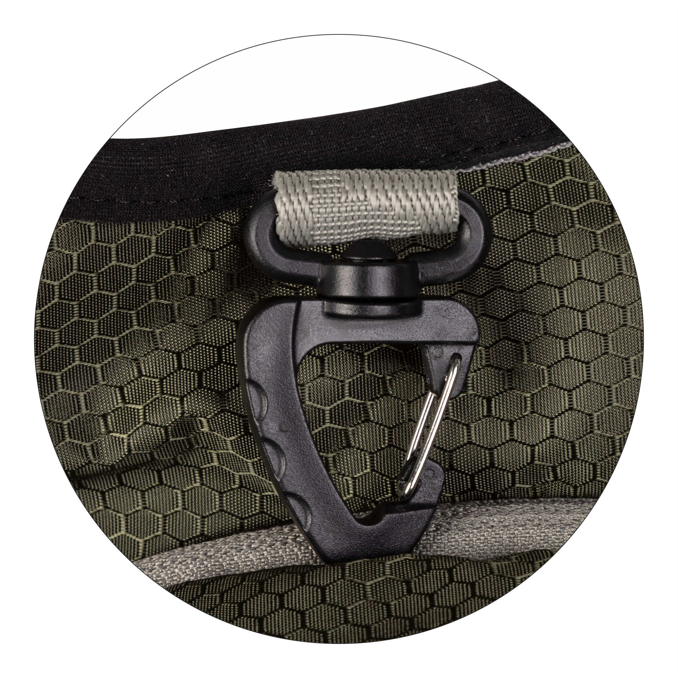 • Dodatki: zaczep do podbieraka, 2 elastyczne kieszenie siatkowe na butelki, parciana taśma do mocowania akcesoriów