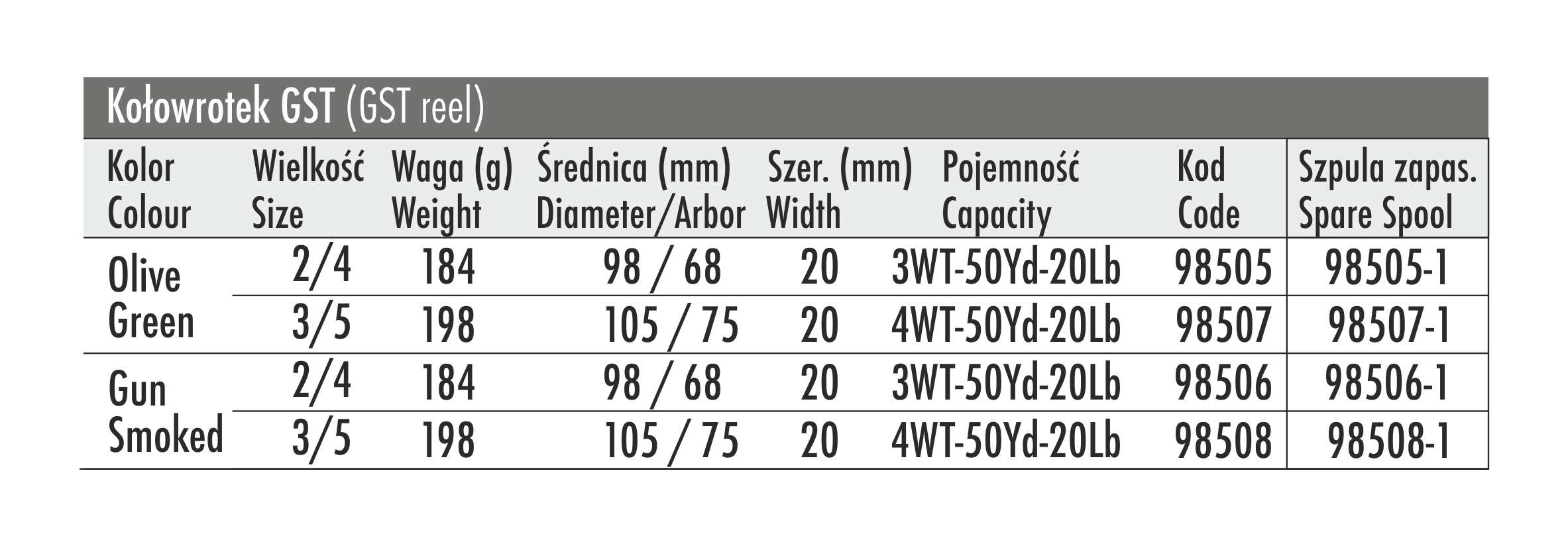 ✅ Pojemność: 4 WT – 50 yd – 20 lb
