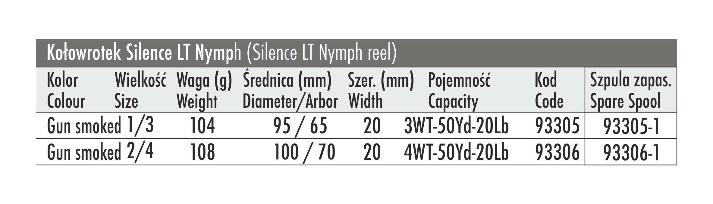 Matowe wykończenie Gun Smoked ogranicza refleksy światła, co ma znaczenie podczas połowów w przejrzystej wodzie, a jednocześnie nadaje kołowrotkowi nowoczesny i profesjonalny wygląd. Model Silence LT Nymph to połączenie lekkości, funkcjonalności i estetyki, doceniane przez wymagających muszkarzy.