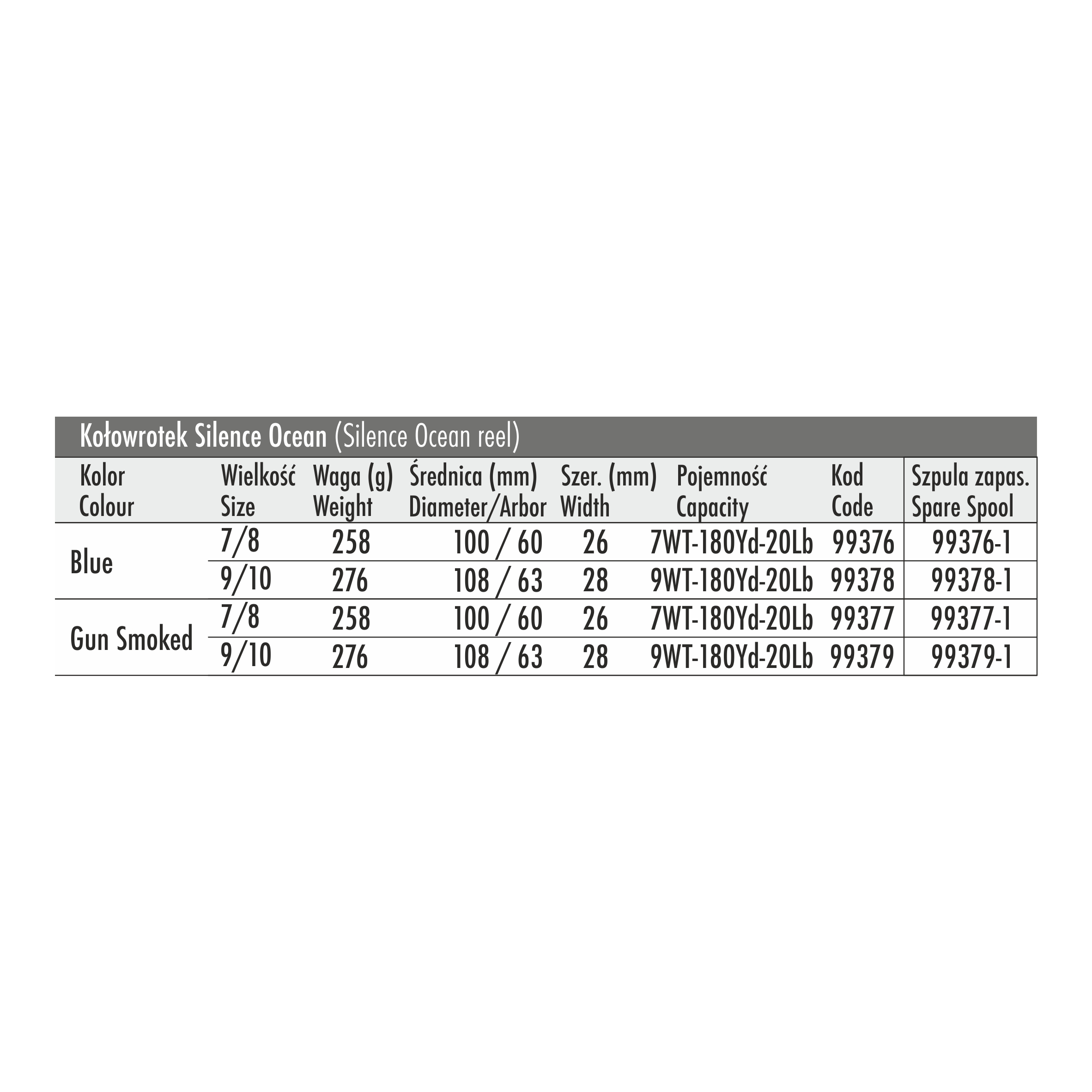• Pojemność szpuli: 7WT – 180 yd – 20 lb