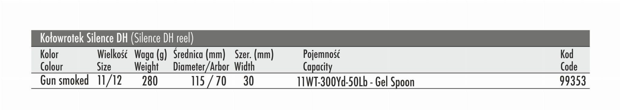 • Pojemność szpuli: 11WT – 300 yd – 50 lb (Gel Spoon)