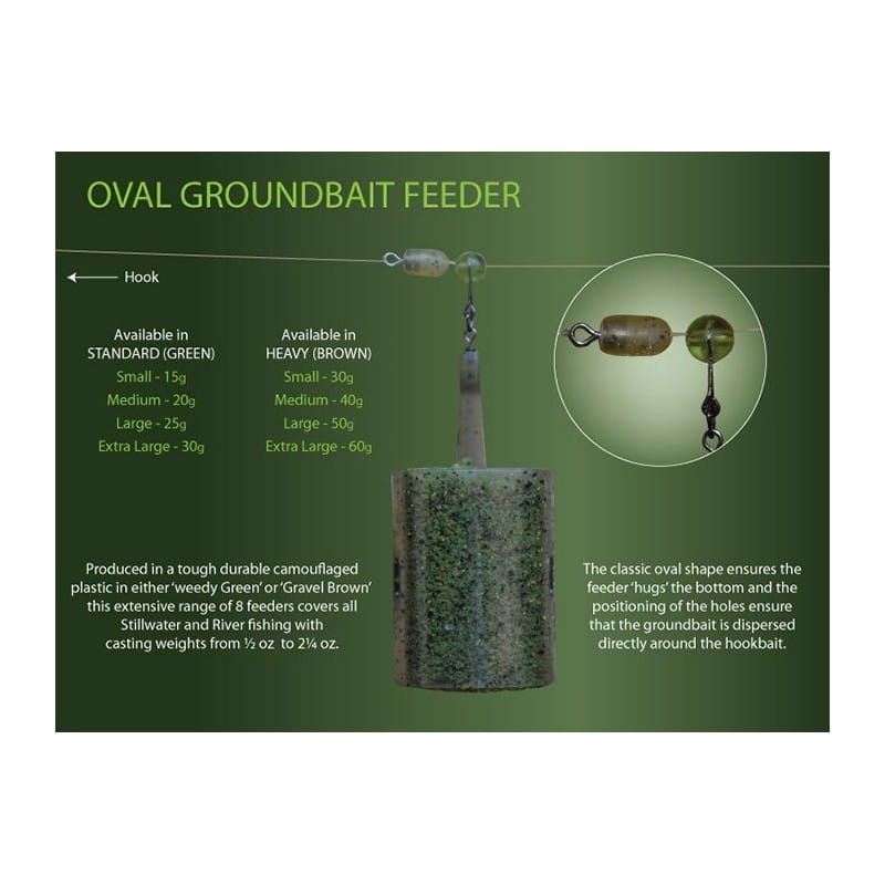 Model Medium jest doskonale wyważony, zapewniając precyzyjne rzuty na średnie odległości. Koszyczki z serii Oval Groundbait Feeder Standard są polecane przez doświadczonych angielskich wędkarzy i świetnie sprawdzają się w rękach wymagających feederowców.