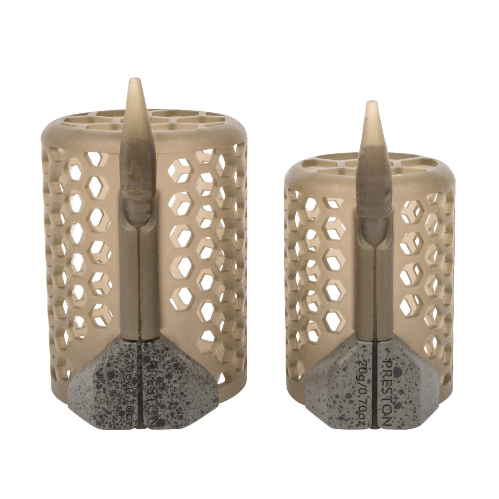 Koszyk wyposażony jest w przemyślane obciążenie z przodu, co zwiększa zasięg rzutu i stabilność w locie. Konstrukcja typu Hexmesh, znana z wcześniejszych serii Preston, zapewnia optymalne uwalnianie zanęty po opadnięciu na dno, pozwalając uzyskać precyzyjne i równomierne nęcenie. Model Medium 20 g to uniwersalny rozmiar, który sprawdzi się zarówno na krótkich, jak i średnich dystansach łowienia.