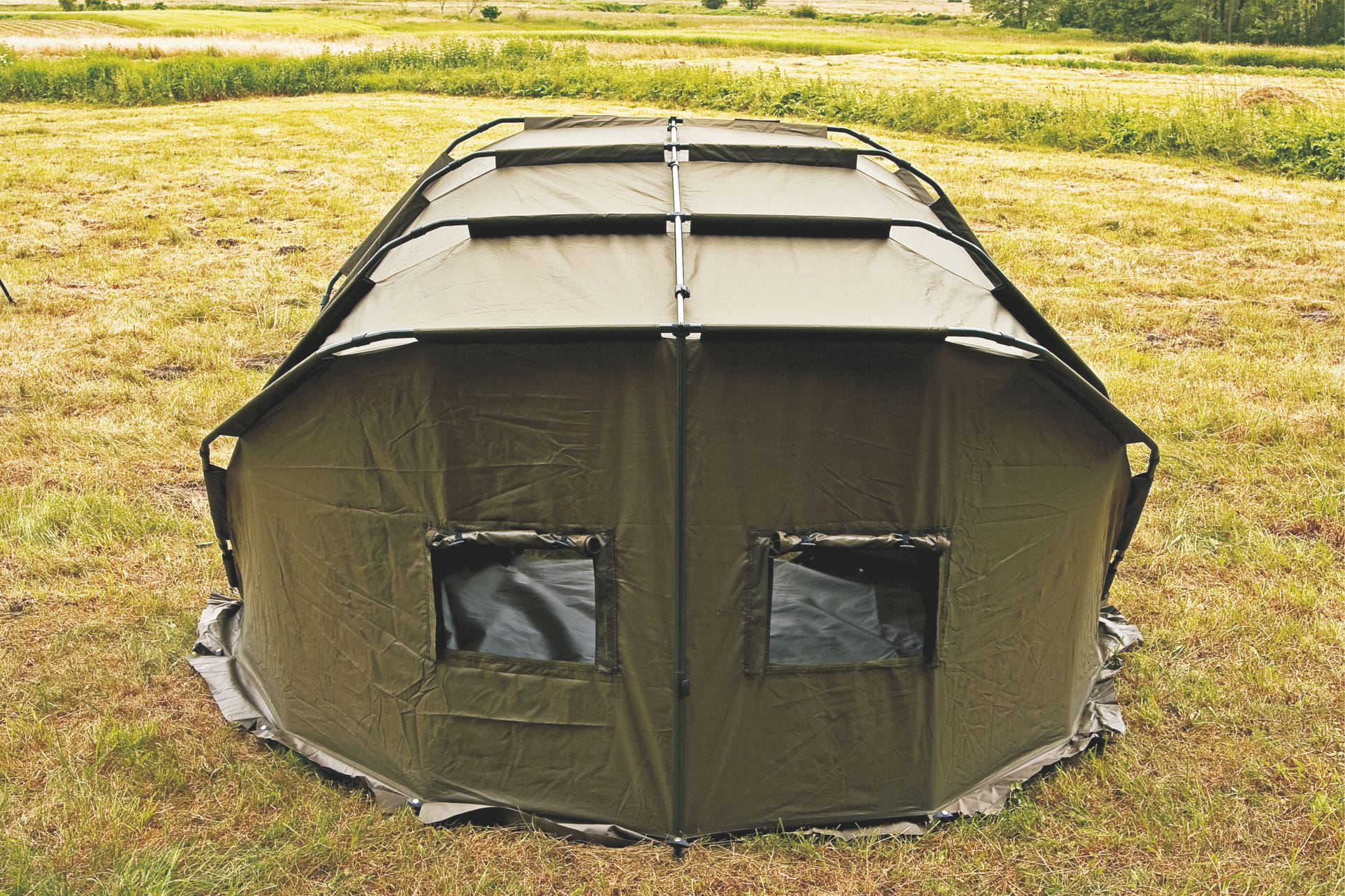 Rolowane drzwi i okna umożliwiają łatwe dopasowanie przestrzeni i wentylacji, a dodatkowe okna mocowane na rzepy zwiększają funkcjonalność. Odpinana przednia ściana pozwala na pełną modyfikację wnętrza namiotu, a pasy napinające stelaż i solidne zamki z gumowanymi żakardami zapewniają trwałość konstrukcji. Mocne szpilki ze stali nierdzewnej umożliwiają stabilne ustawienie namiotu w trudnych warunkach terenowych.