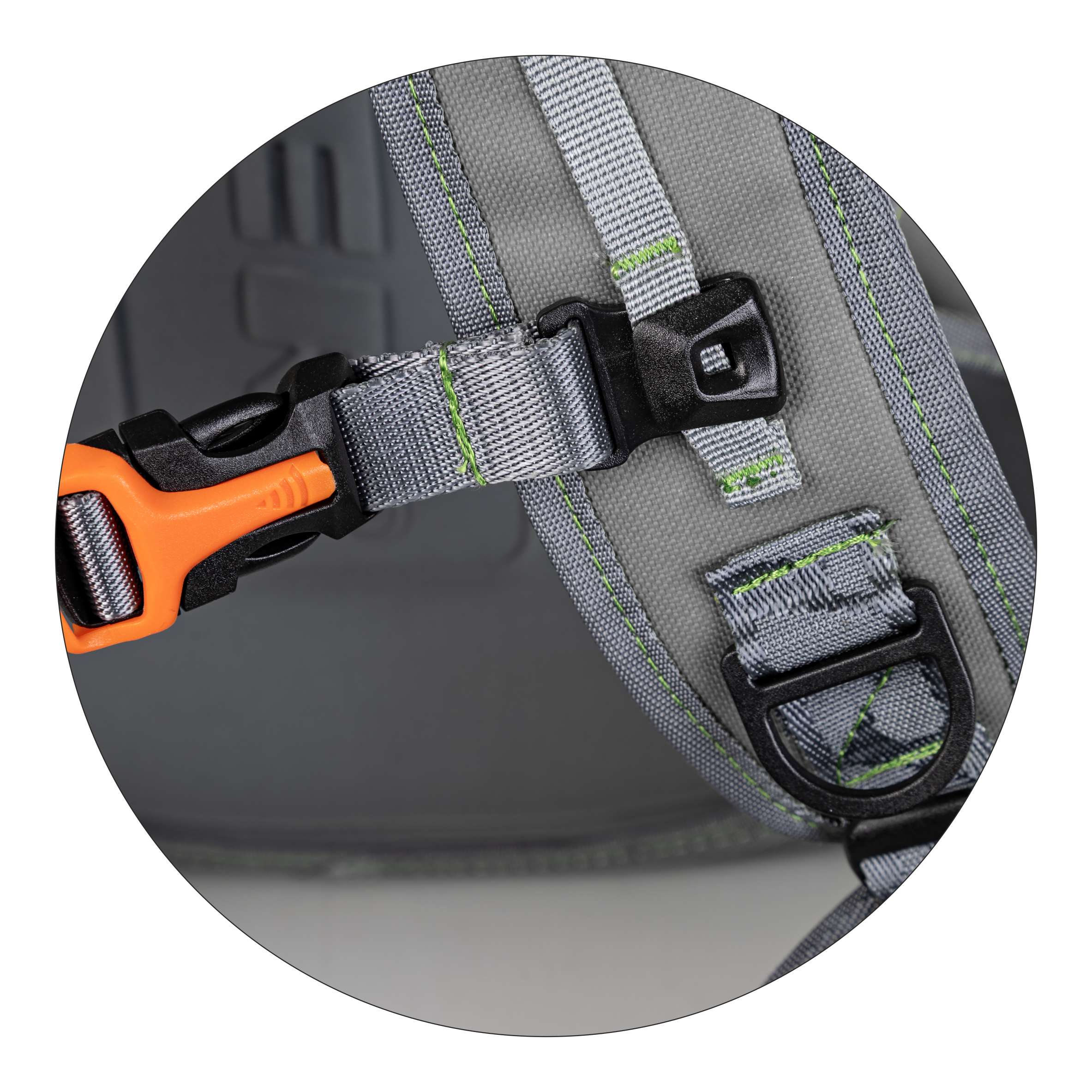 • Dodatki: karabińczyk do podbieraka, gumy do mocowania zapasowej wędki lub kijka do brodzenia, odpinany pas biodrowy, D-ringi, szlufki, rzepy, zamykane karabińczyki na pasach, usztywniony panel pleców
