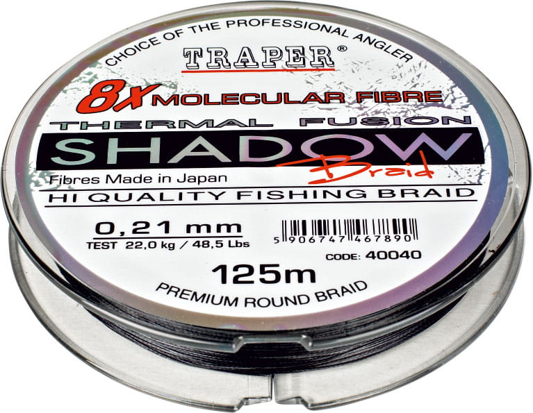 Plecionka wykonana z japońskich mikrowłókien. Ścisły i gęsty splot włókien czyni plecionkę SHADOW bezgłośną na przelotkach, nienasiąkliwą oraz zapewnia wysoką jakość barwy linki. Gładka powierzchnia, okrągły przekrój i nierozciągliwość zapewniają perfekcyjne układanie plecionki na szpulach kołowrotków o różnych przekładniach i sposobach rozwijania. Bardzo wysoka wytrzymałość linkowa i na węzłach gwarantuje pewny hol.