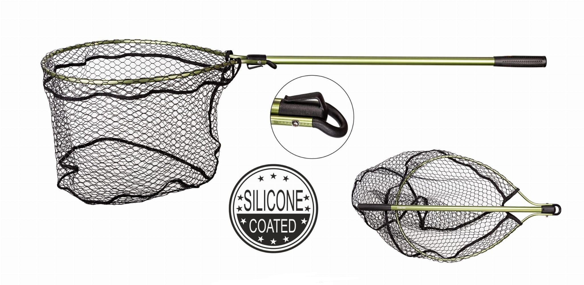 ✔ Siatka z dakronu laminowanego silikonem – miękka, bezpieczna dla ryb i trwała
