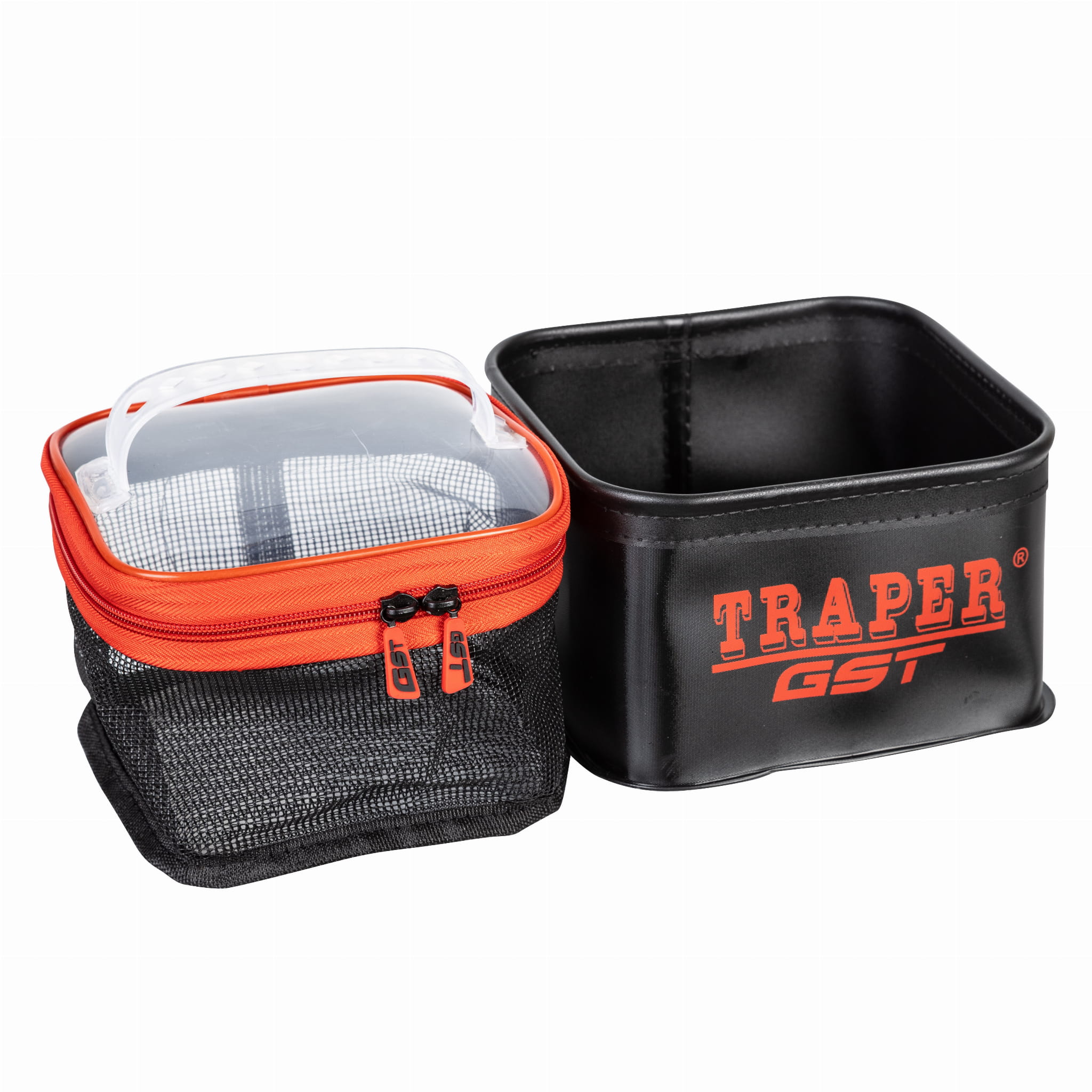 Pojemnik PCV do pelletu z sitkiem Traper GST – czarny 18×18×11 cm