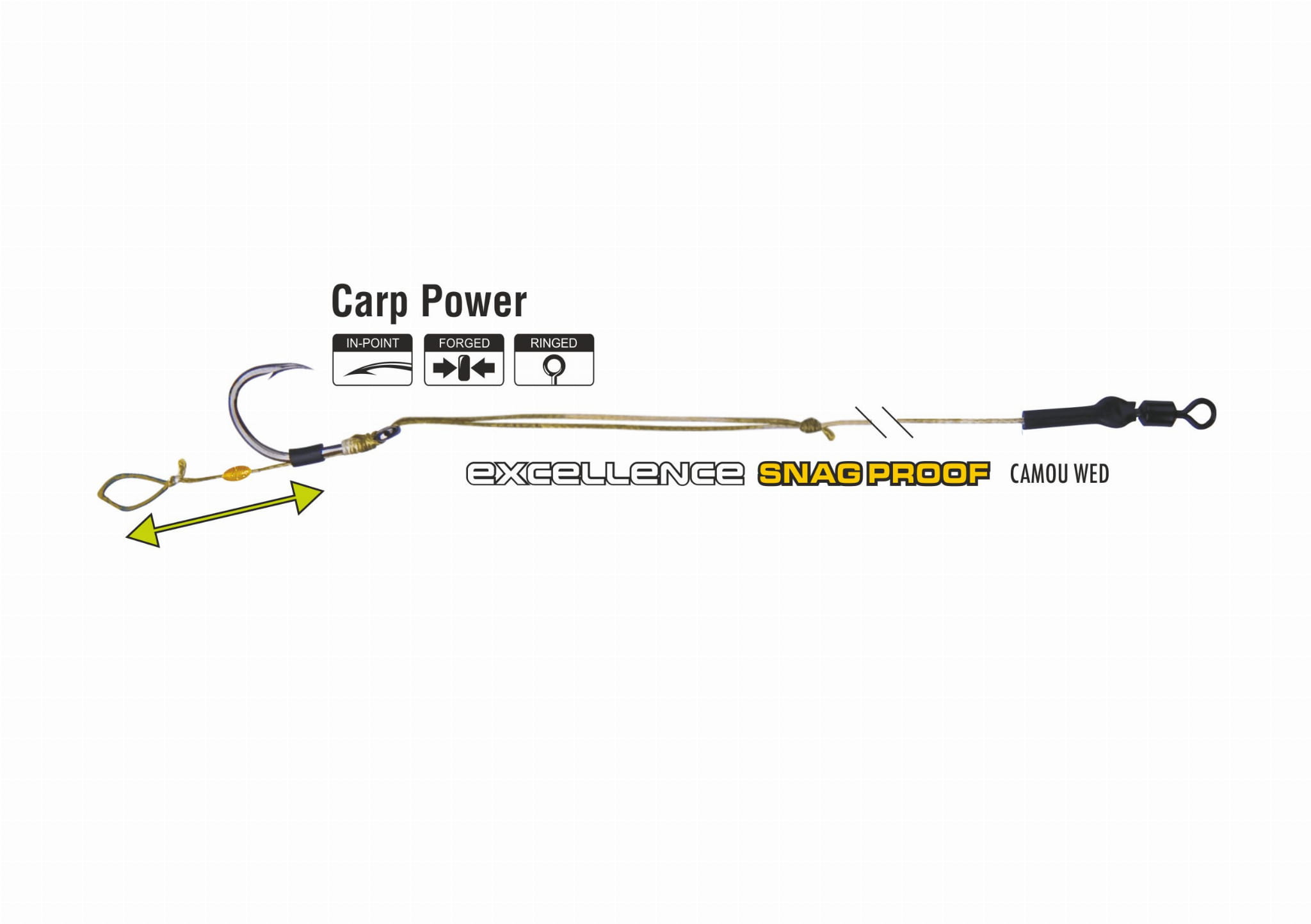 Regulacja długości włosa – Nowatorska konstrukcja przyponu pozwala na łatwą i szybką regulację długości włosa, co daje możliwość dostosowania przyponu do różnych rodzajów przynęt i warunków łowienia. Ta funkcjonalność zwiększa uniwersalność zestawu, umożliwiając stosowanie go w wielu technikach wędkarskich.
