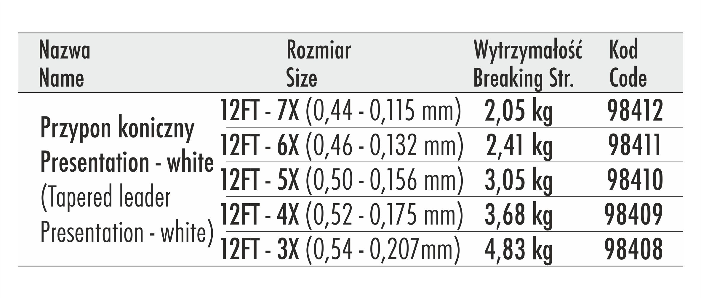 Traper Presentation 12 ft – 6X to japoński przypon koniczny stworzony do precyzyjnego łowienia na suchą muchę i lekkie nimfy. Dzięki zwiększonej długości umożliwia bardzo naturalne ułożenie zestawu na wodzie, nawet przy delikatnych rzutach pod prąd.