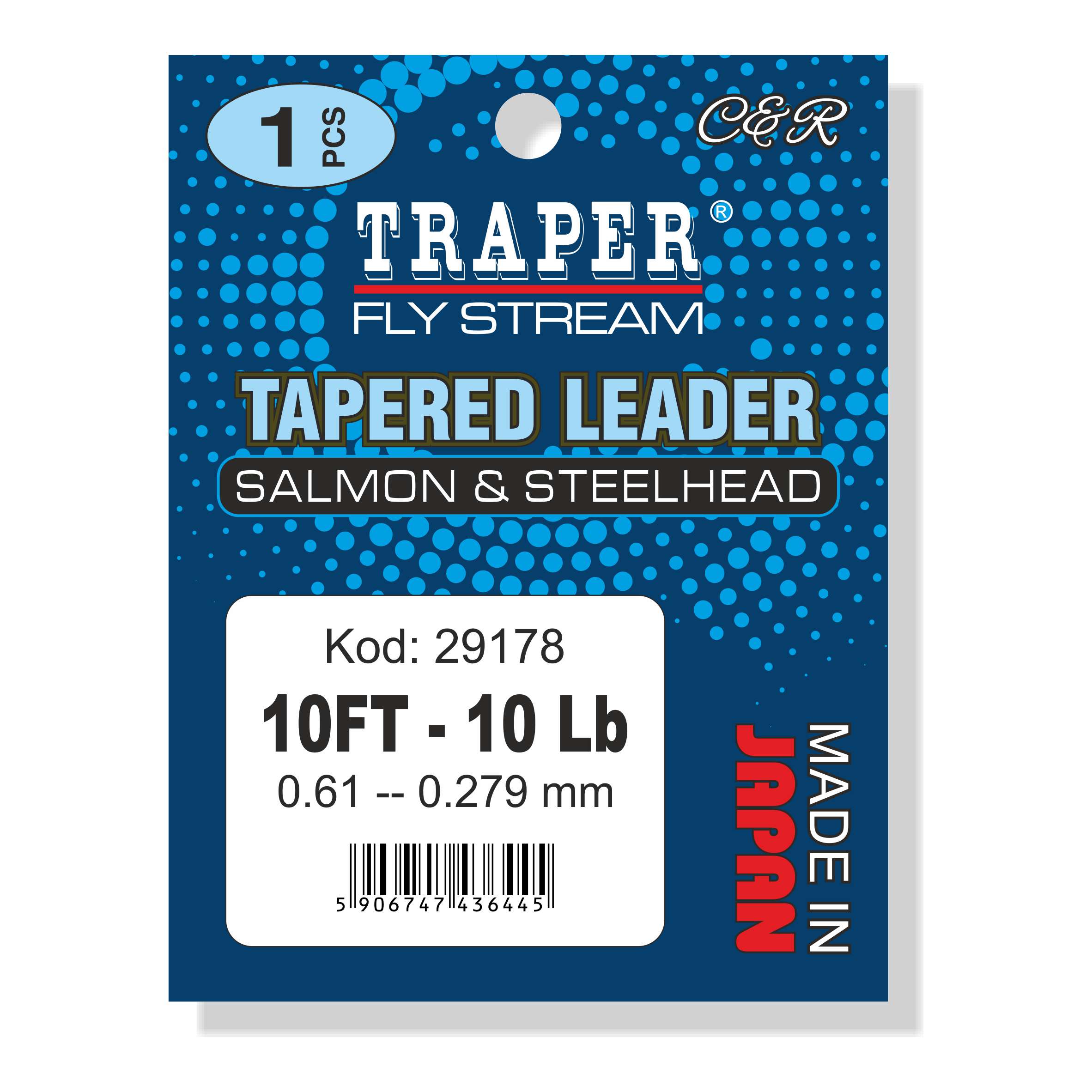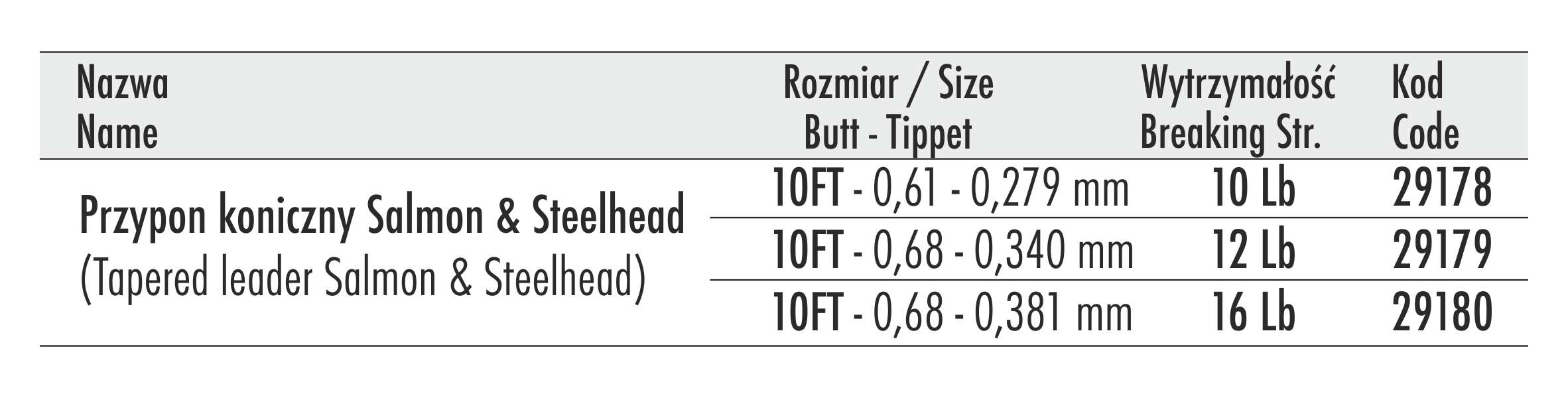 Traper Salmon & Steelhead – to japoński przypon koniczny wykonany z najwyższej jakości kopolimerów, całkowicie nienasiąkliwy, dzięki czemu nie traci wytrzymałości i trwałości podczas wędkowania w wodzie.