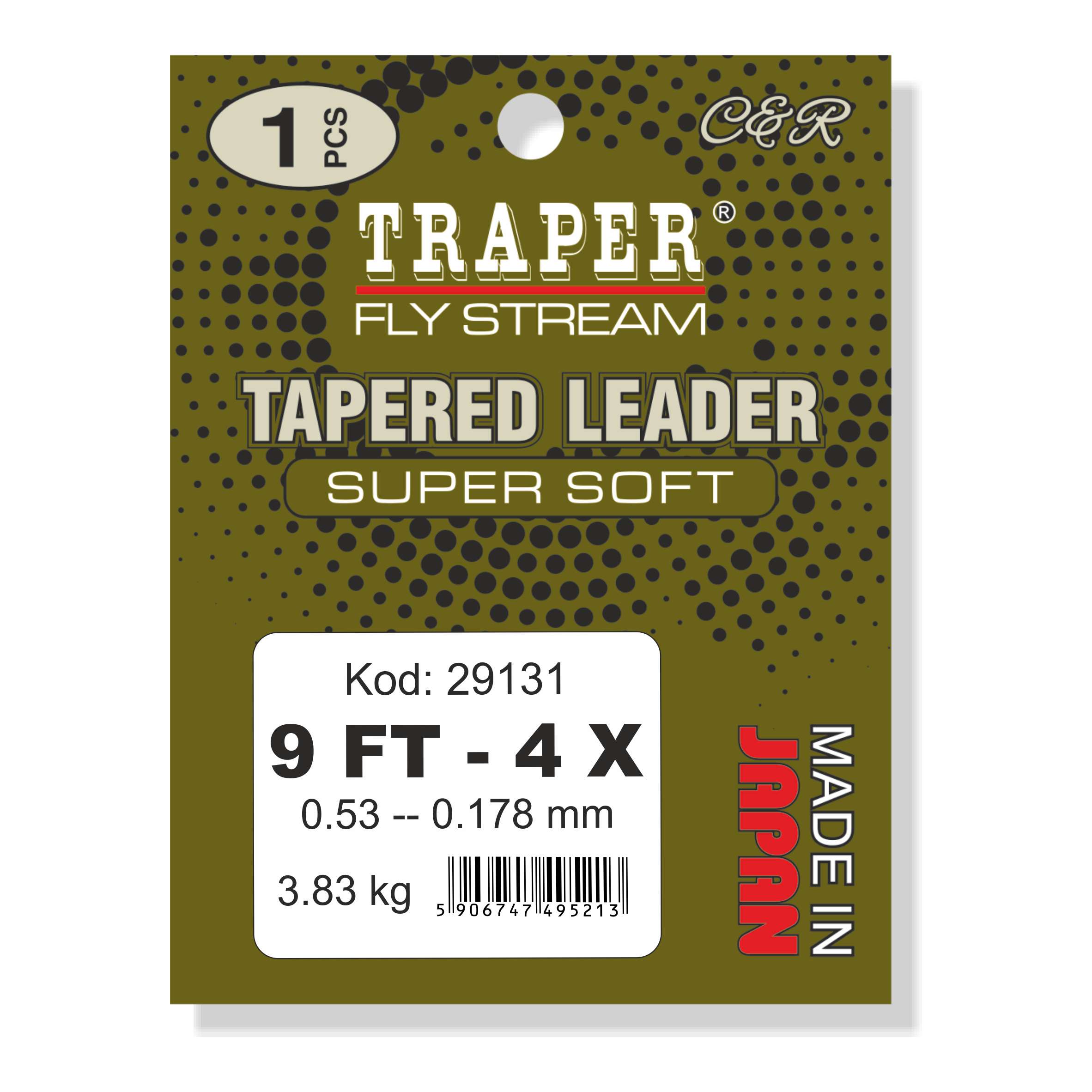 Japoński, monolityczny przypon koniczny Traper Super Soft Olive to profesjonalny wybór dla wędkarzy ceniących precyzję i delikatność w połowie ryb metodą muchową.