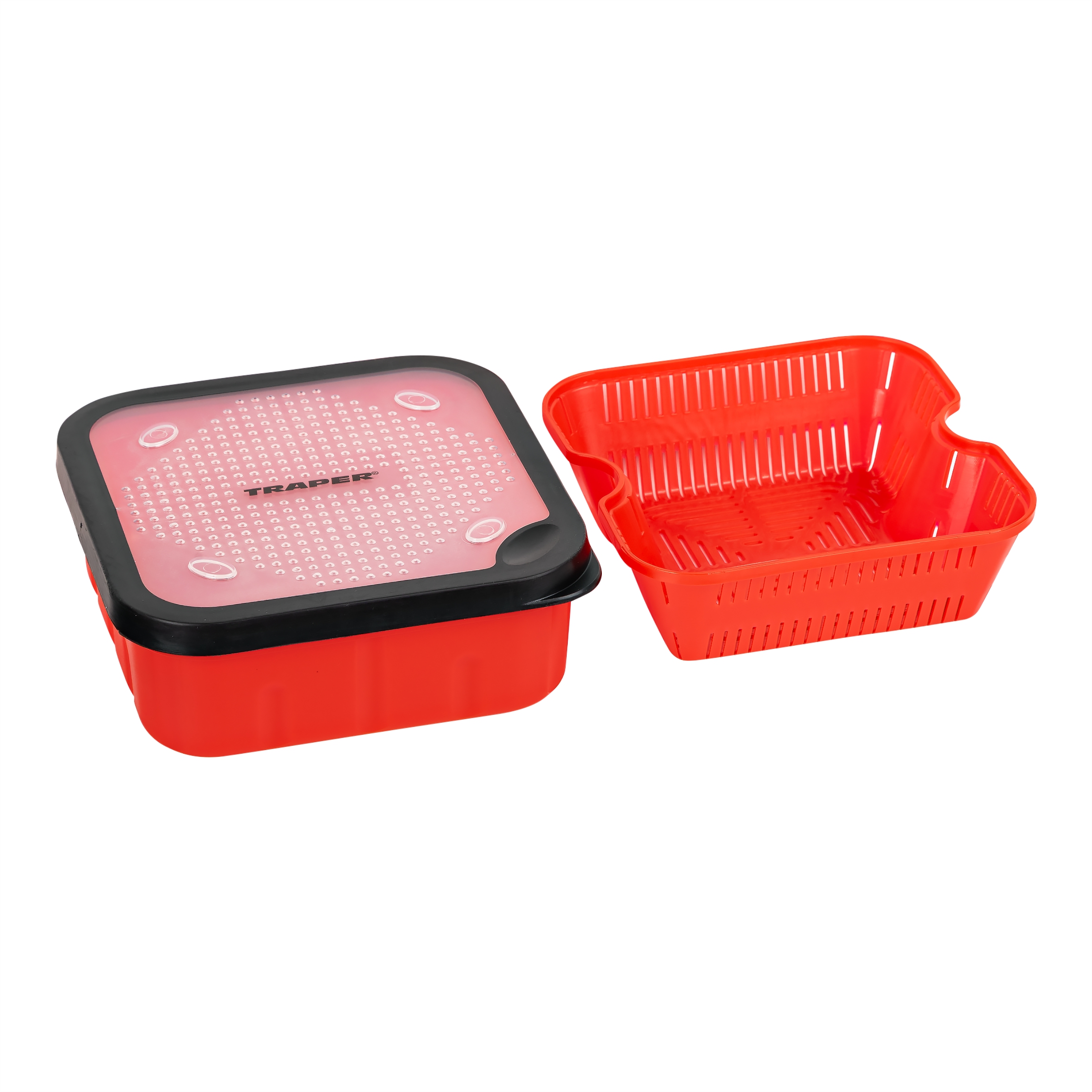 Pudełko Traper z sitkiem do pelletu to praktyczne i funkcjonalne rozwiązanie, stworzone przede wszystkim do namaczania pelletu do koszyczków Method Feeder. Dzięki niemu przygotowanie zanęty jest szybkie, precyzyjne i wygodne, bez potrzeby używania dodatkowych pojemników.