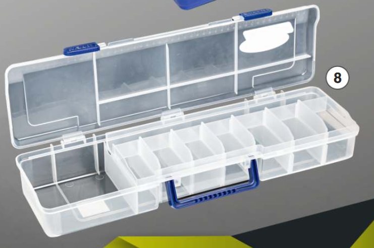 Pudełko z półką Traper Pojemne pudełko wędkarskie z praktyczną półką, ułatwiające segregację i przechowywanie większych akcesoriów oraz drobnego sprzętu.