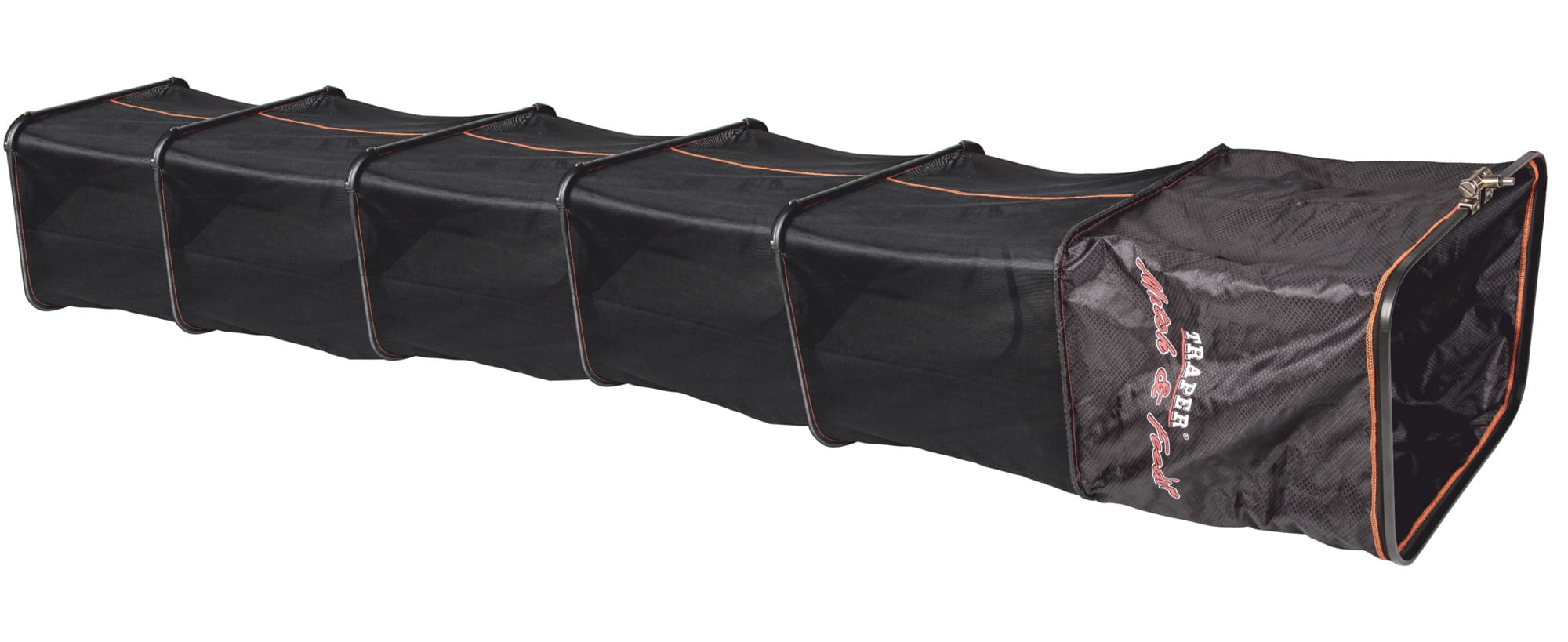 Siatki Match & Feeder to perfekcja w każdym detalu. Obręcze siatek wykonane są z nieodkształcającej się stali nierdzewnej. Uchwyty mocujące do podpórek posiadają regulację kąta nachylenia. Górna część siatki jest rozszerzona, co ułatwia wrzucanie ryb do wnętrza. Wykonana z jednolitego, miękkiego dakronu bez perforacji. Matnia na całej swej powierzchni posiada bardzo drobne otwory, co pozwala na szybkie zatapianie. Miękki dakron, pokryty dodatkowo cienką warstwą teflonu, stwarza przechowywanym rybom niezbędny komfort, zapewniając im dobrą kondycję po wypuszczeniu. Krawędzie obręczy zabezpieczone są mocnymi narożnikami z tworzywa.