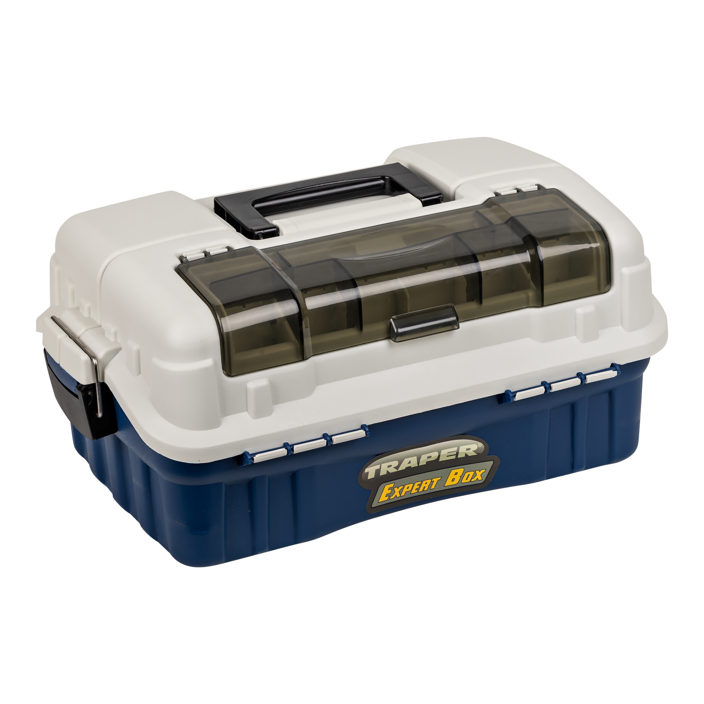 Skrzynka wędkarska Traper Open z dwiema półkami – 39×25×16 cm
