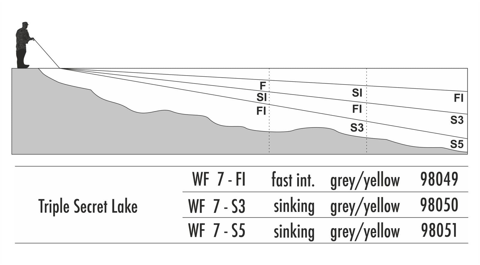 Traper GST Triple Secret Lake WF7-S3 – Grey/Yellow (Tonąca / Sinking – trzy sekcje) to profesjonalna linka muchowa o wadze 255 grain / 16,5 g, idealna do zawodniczego łowienia w jeziorach i wodach stojących. Konstrukcja z trzema sekcjami o różnych klasach tonięcia umożliwia precyzyjne prowadzenie przynęty i kontrolę głębokości, a gładka powierzchnia zapewnia płynne rzuty i długie użytkowanie. Oba końce linki zakończone są pętlami, co ułatwia montaż zestawu.