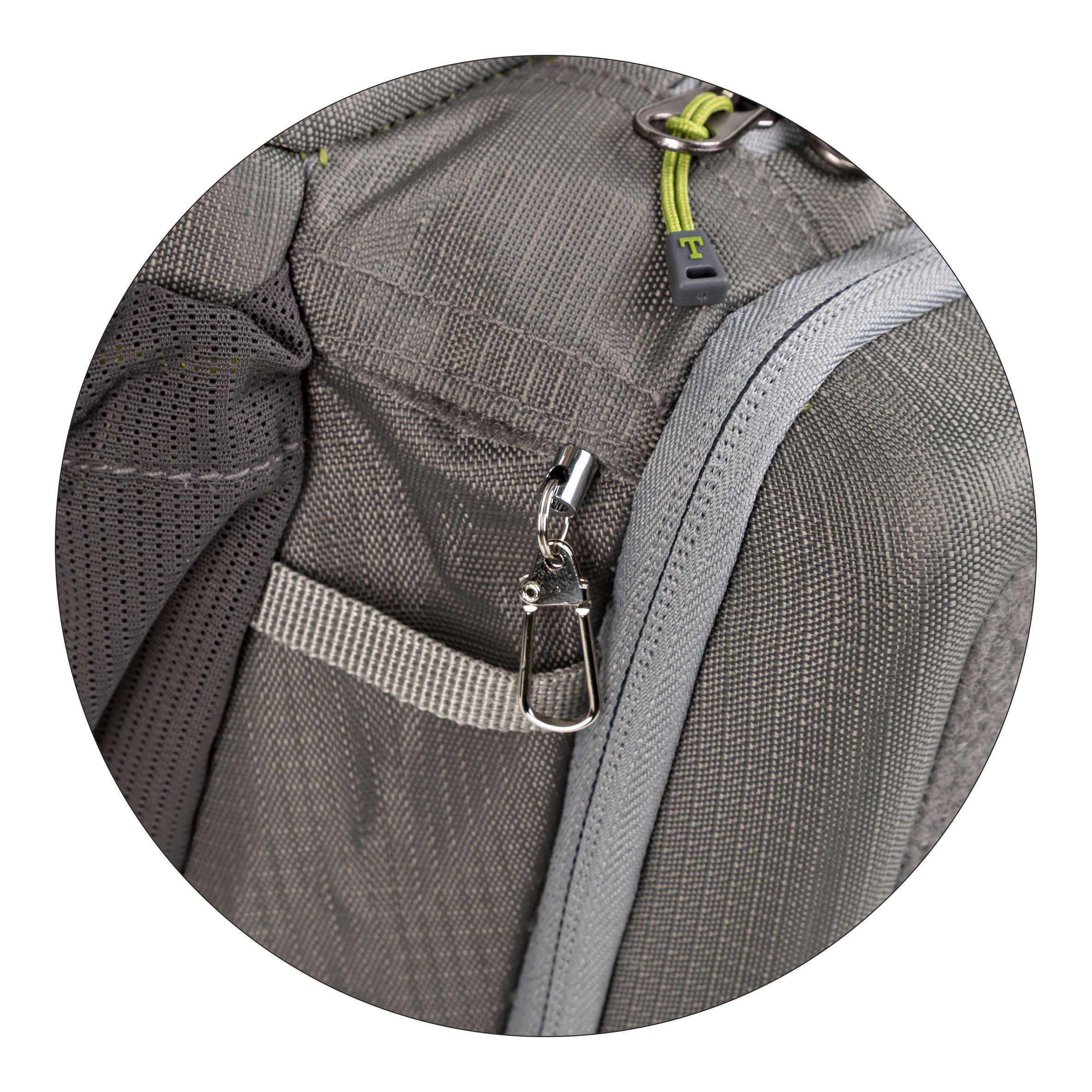 Liczne uchwyty, troki i karabińczyki zwiększają funkcjonalność, a pas naramienny z organizerem zapewnia komfort użytkowania nawet podczas długich wypraw. Dolna kieszeń na bidon oraz pasy kompresyjne czynią slingpack wyjątkowo praktycznym w terenie.