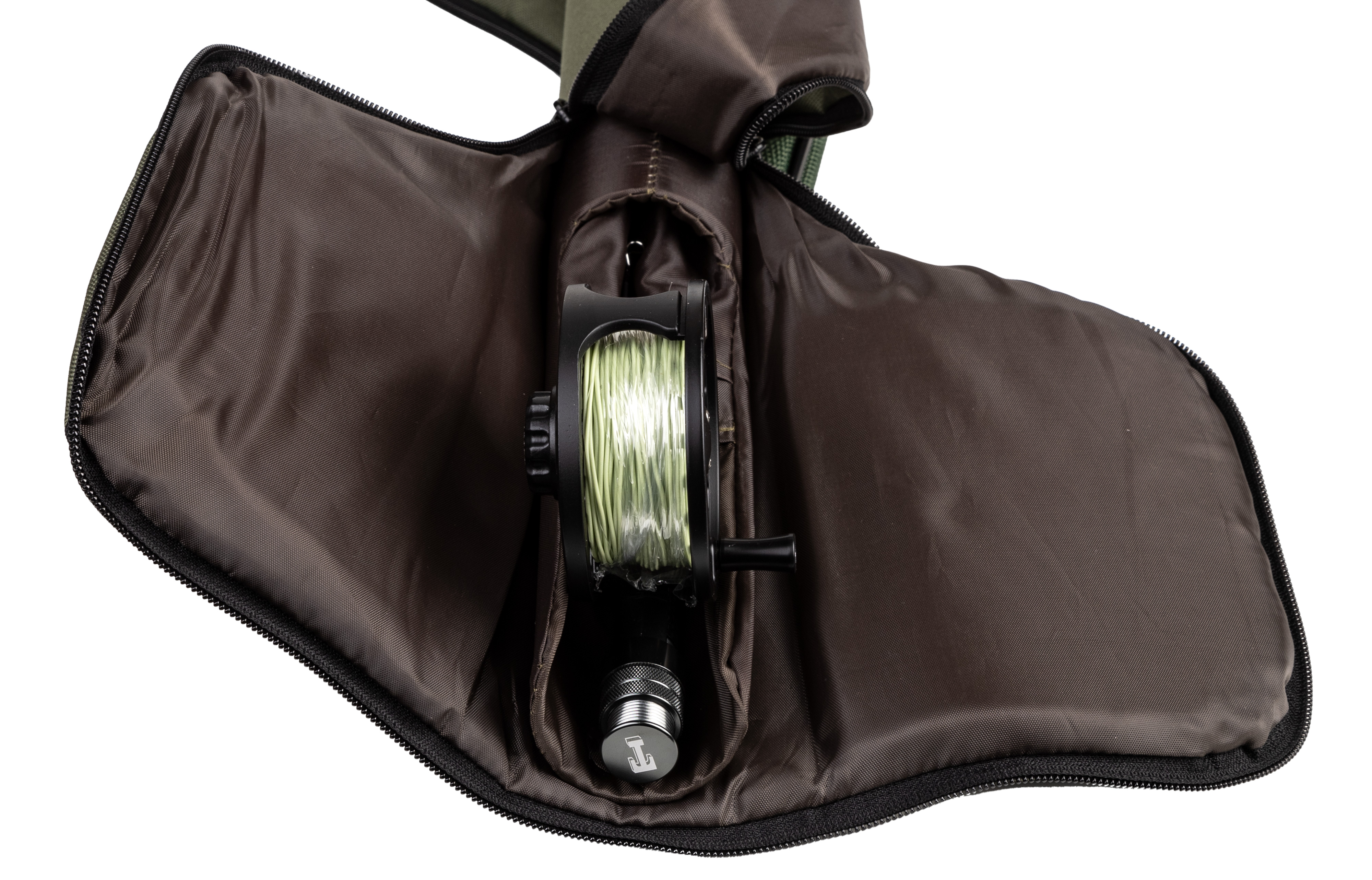 Tuba na wędki muchowe Traper – pojedyncza 85 cm – Ø 6 cm to solidna tuba transportowa odporna na uderzenia, idealna do przenoszenia wędki z kołowrotkiem. Wnętrze posiada przegrodę na segmenty wędki oraz komorę na kołowrotek wyścieloną miękką pianką, chroniącą sprzęt przed uszkodzeniami. Całość wykonana jest z trwałej cordury, obszyta nylonem 600D, co zapewnia odporność i długą żywotność. Zamek błyskawiczny umożliwia wygodny dostęp do wnętrza, a regulowany pas ułatwia przenoszenie. Produkt marki Traper gwarantuje bezpieczeństwo i komfort transportu wędek.