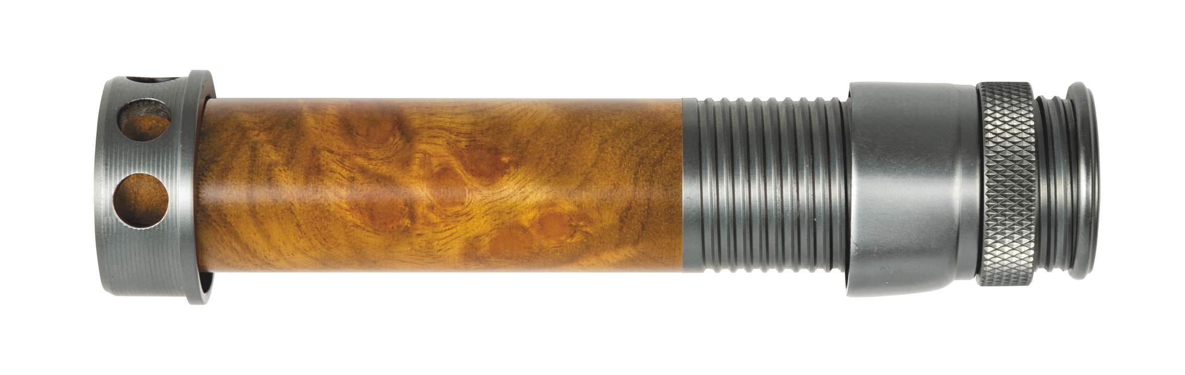 Uchwyt do kołowrotka Traper – tytan C wykonany jest z naturalnego drewna egzotycznego, co nadaje mu elegancki wygląd i trwałość. Każdy egzemplarz może różnić się nieznacznie kolorem i słojami drewna, dzięki czemu jest unikalny. Produkt marki Traper zapewnia wygodne i estetyczne mocowanie kołowrotka, zwiększając komfort wędkowania.