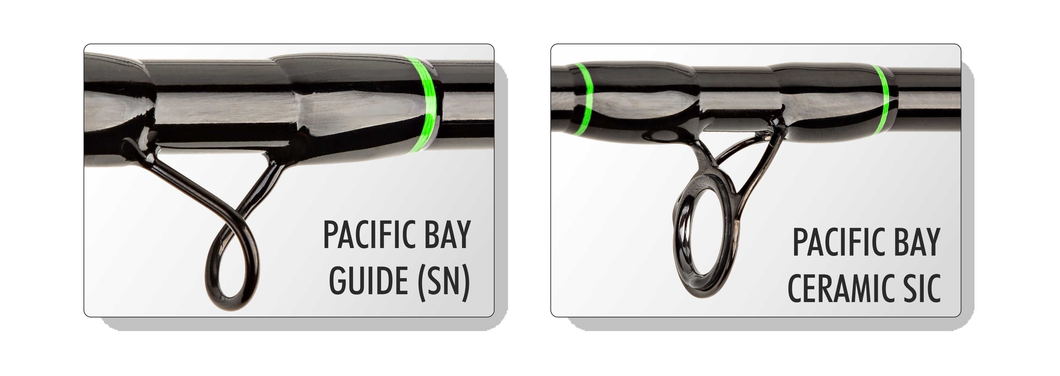 Wędzisko uzbrojono w amerykańskie przelotki Pacyfic Bay FT-1, SN-8, SIC-2, odporne na intensywną eksploatację i duże przeciążenia. Solidny uchwyt kołowrotka Seat B z podwójnym dociskiem oraz niezniszczalna rękojeść z włókna węglowego gwarantują pewny chwyt i stabilność nawet podczas siłowego holu największych ryb.