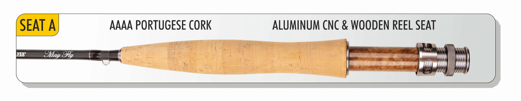 Rękojeść z portugalskiego korka klasy AAAA zapewnia doskonały chwyt i komfort nawet podczas wielogodzinnego łowienia. Uchwyt kołowrotka z aluminium CNC, osadzony na egzotycznym drewnie, podkreśla prestiżowy charakter wędki.