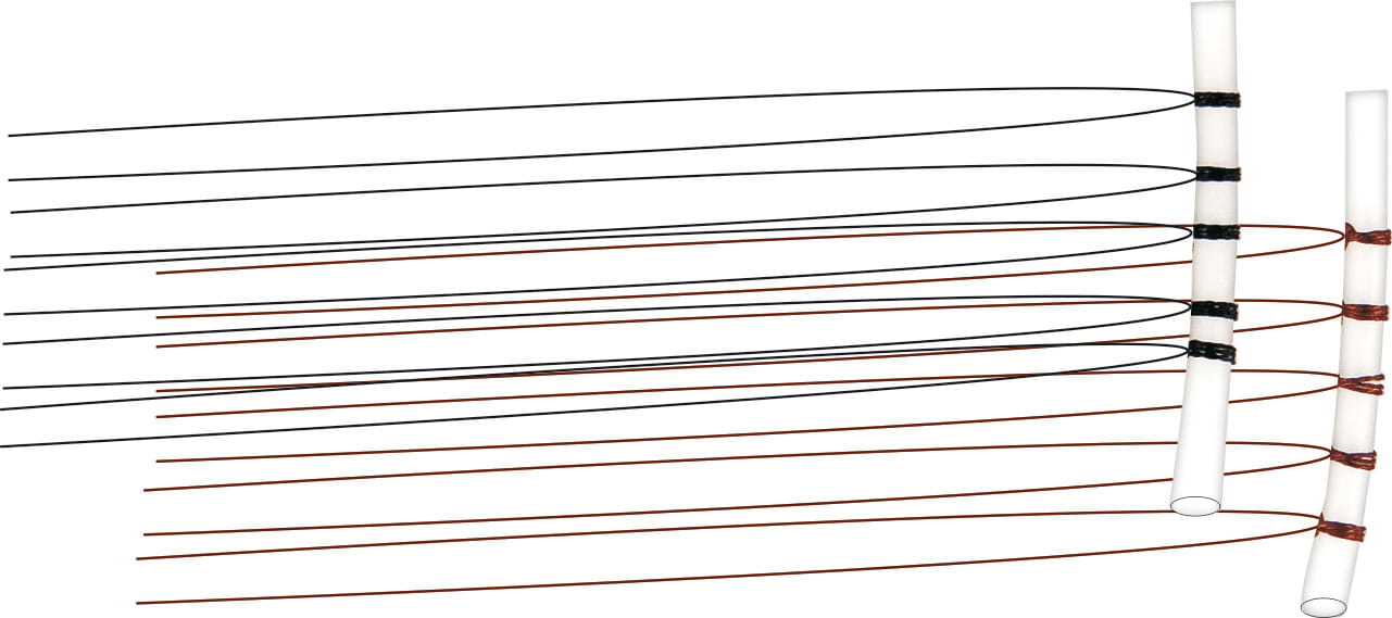 Plecionki dakronowe z zarobiony, zaciskowym uszkiem. Służą do robienia dowolnej długości włosa, przytwierdzonego bezpośrednio do haka.