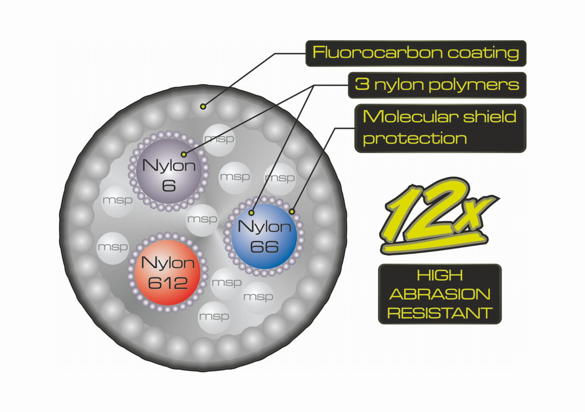 Bardzo mała rozciągliwość pozwala na szybkie i pewne zacięcie ryby, a fluorocarbonowa powłoka zwiększa odporność na przetarcia. Precyzyjne laserowe nawinięcie w systemie Parallel Spooling gwarantuje równomierne rozwijanie żyłki i minimalizuje pamięć materiału.