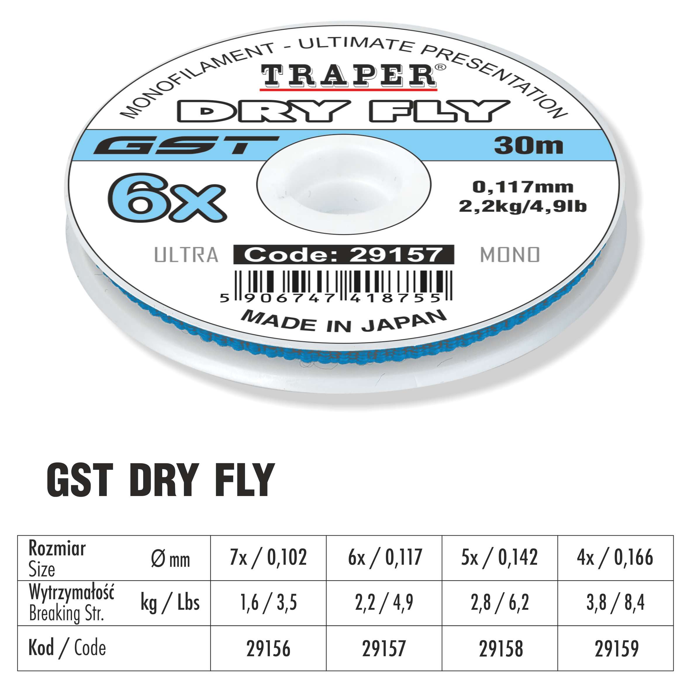 Żyłka Traper GST Dry Fly 0,142 mm / 30 m to monolityczna, japońska żyłka zawodnicza, przeznaczona do łowienia na suchą i mokrą muchę. Dzięki wyjątkowej elastyczności doskonale amortyzuje przeciążenia podczas holu, chroniąc przypony i zwiększając skuteczność połowu.