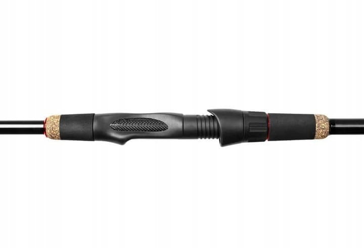 Wędzisko wyposażono w ergonomiczny uchwyt Fuji oraz dzielony dolnik z wysokiej klasy pianki EVA i Rubber Cork, który doskonale leży w dłoni i zapewnia komfort nawet podczas wielogodzinnych połowów. Ozdobne nici w kolorze czerwonego wina oraz czerwona strefa sygnalizacyjna na blanku pomiędzy przelotkami zwiększają widoczność brania, dodając jednocześnie elegancji całej konstrukcji.